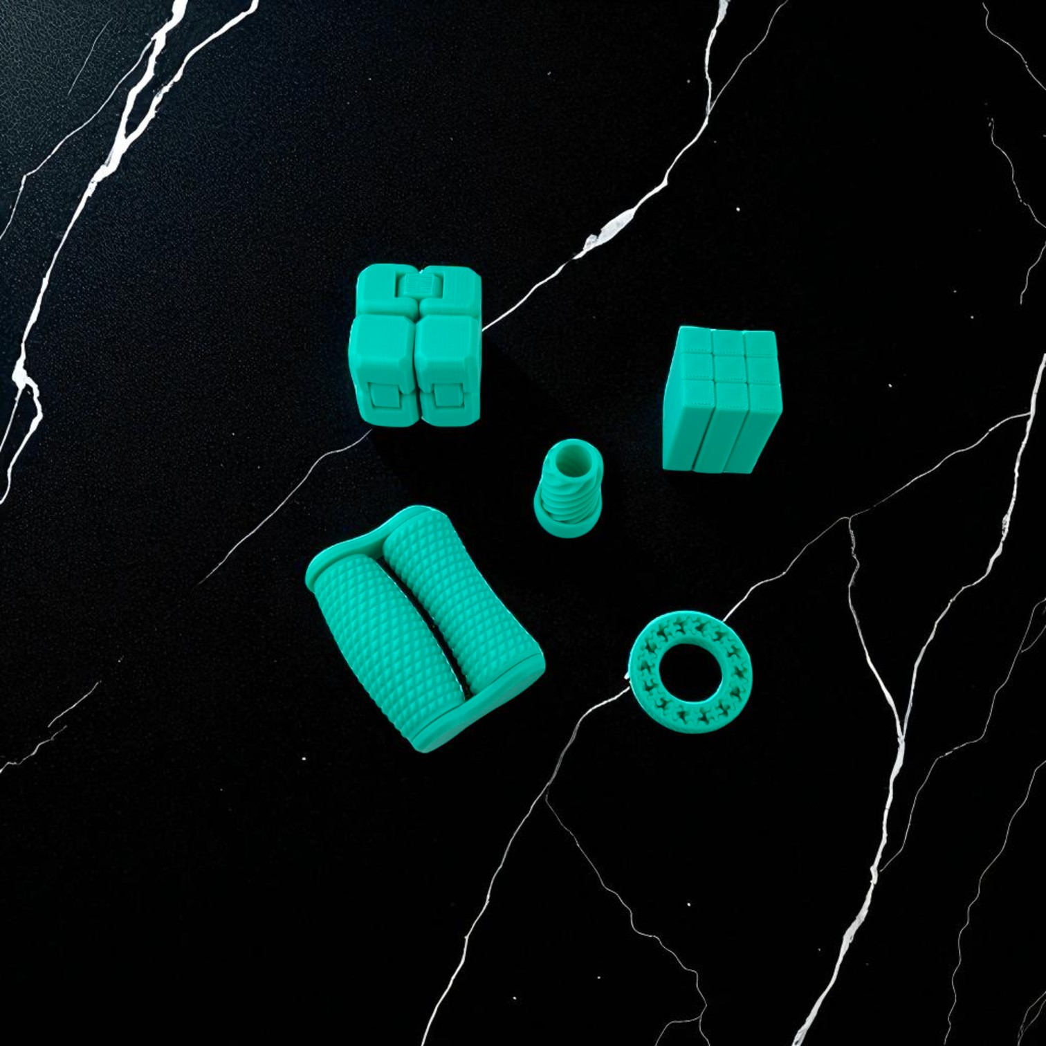- Five Unique Fidget Tools: Includes the Nested Gear Fidget Ring, Textured Roller Fidget, Infinity Fidget Block, Spiral Grip Fidget, and the classic Infinity Cube for a complete sensory experience.